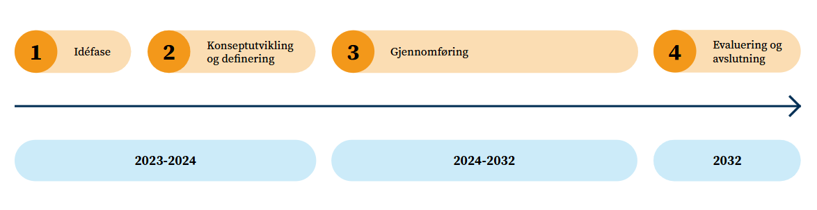 Programmet Ungt løft Trondheim har en varighet frem til 2032. Denne perioden er delt inn i fire faser, hvor gjennomføringsfasen utgjør den lengste og mest omfattende delen av programperioden.
