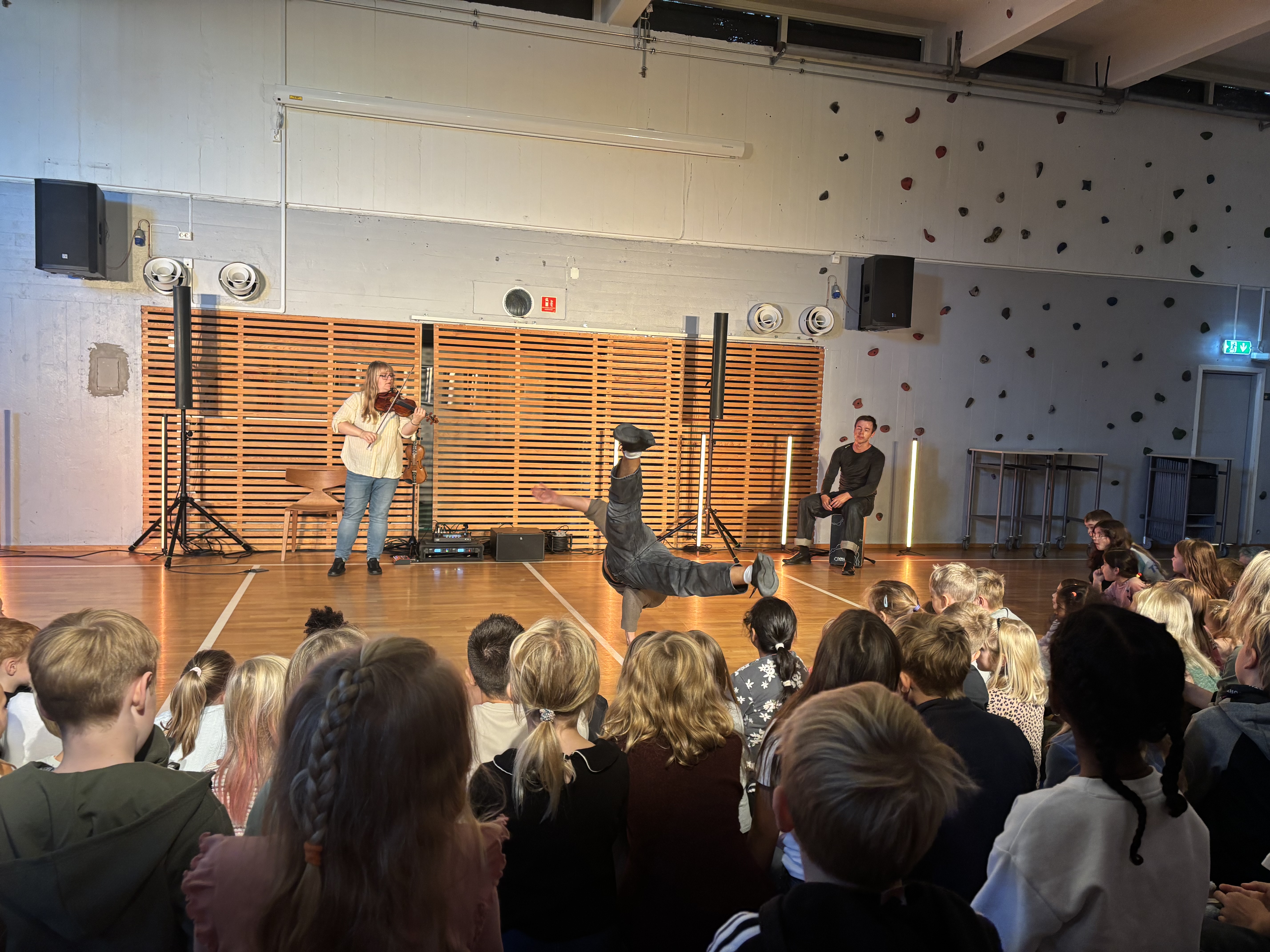 Onsdag 17. september fikk hele skolen bli med på konsert med bandet "Bare fjas og blågras". Her er noen bilder fra konserten: