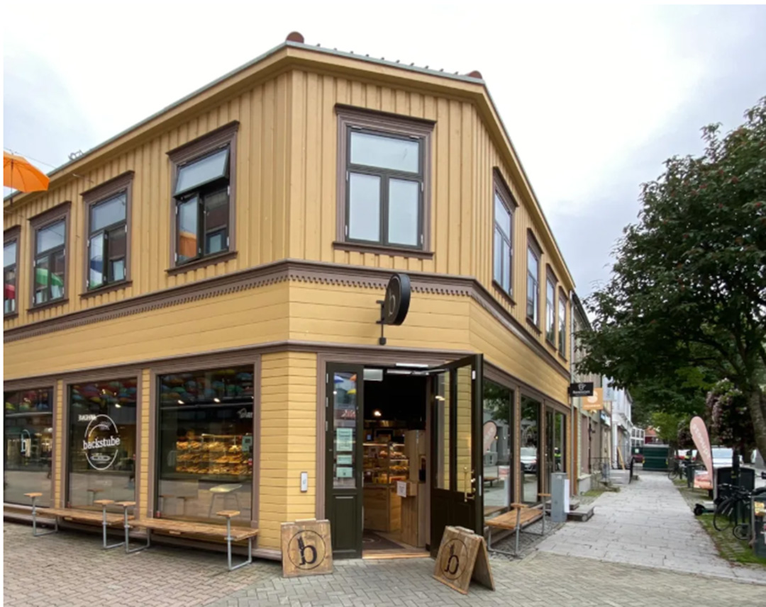 I Jomfrugata er fasaden tilbakeført til slik den var for 125 år siden. Den nye inngangen på hjørnet er trinnfri.