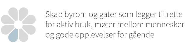 Alle byggesonene skal utvikles på en måte som bidrar til å skape en inkluderende by, der bymiljø og møteplasser er tilgjengelige og åpne for alle.