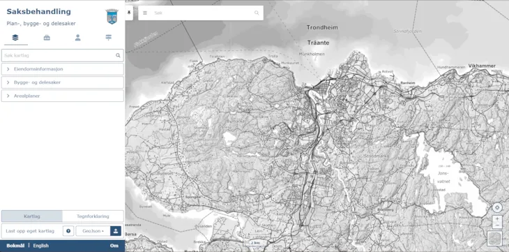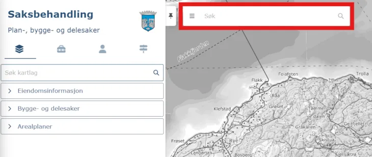 - Søk på adresse, gater med mer ved å gå inn på søkemenyen som ligger øverst i kartet.