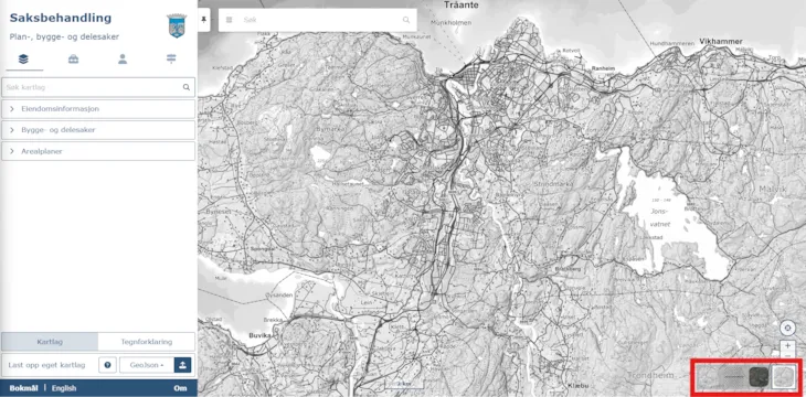 - For noen kartlag må du zoome inn før innholdet blir tegnet opp (målestokkavhengig opptegning). Det gjelder for eksempel reguleringsplaner.