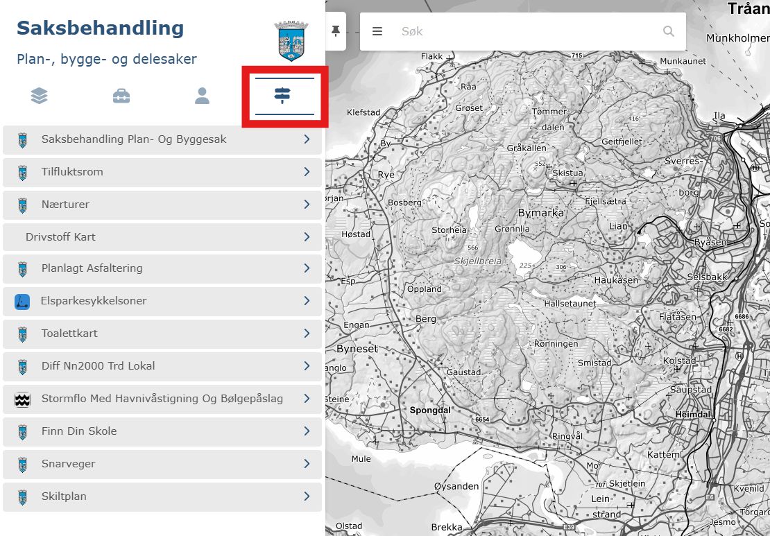 Direkte til saksbehandlingskart