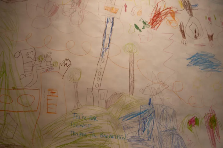 – Det er atelieret vårt, der barna skal ha tilgang til masse materialer som de kan uttrykke seg med og gjennom. I tillegg har vi flere rom som er tilrettelagt for bygg, konstruksjon, rollelek, spill og lesing. Vi har også et rom der barna kan drive med naturfaglig utforskning.