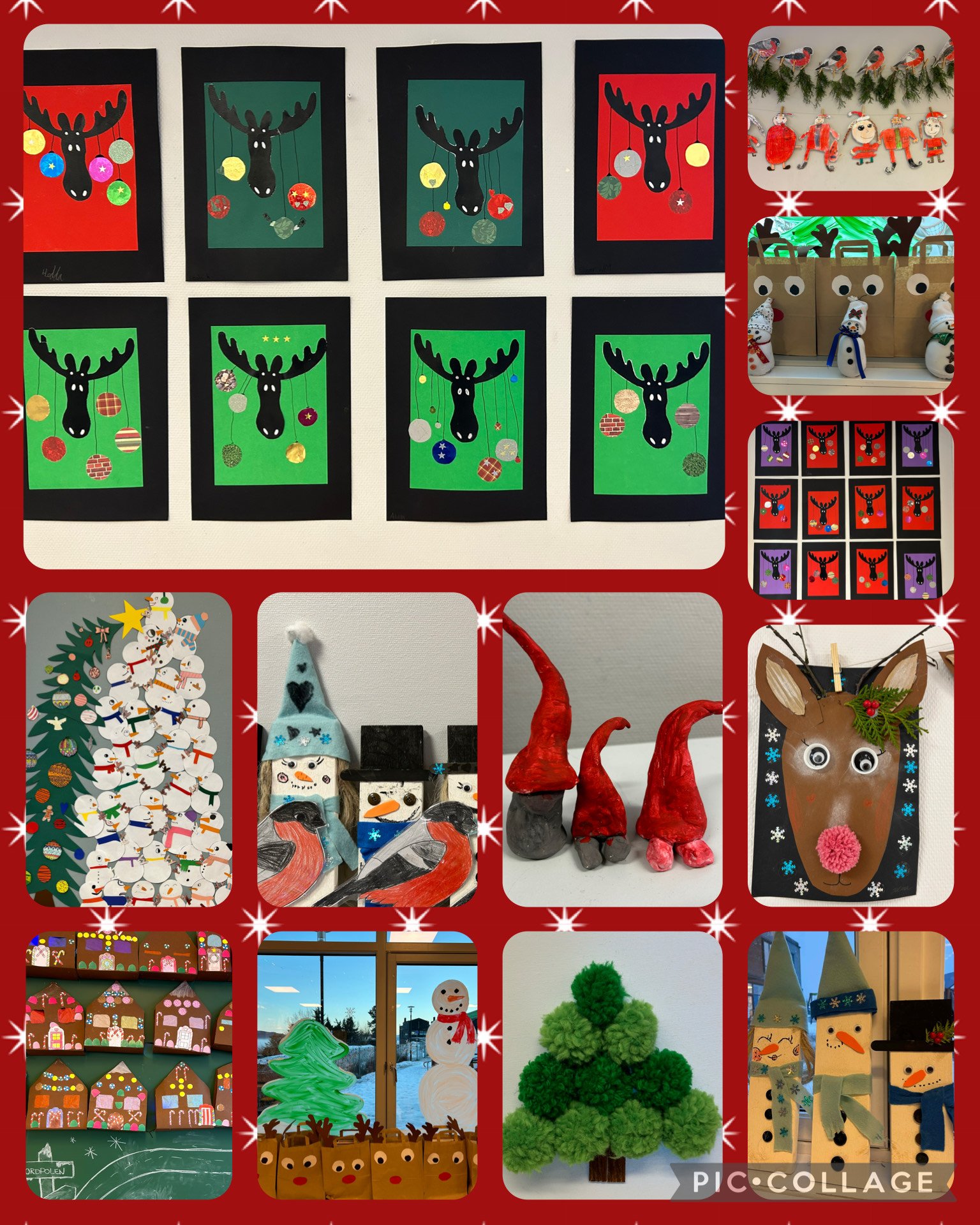 Med denne collagen med fin elevkunst ønsker vi på Stavset skole alle en riktig God Jul og et Godt Nyttår.