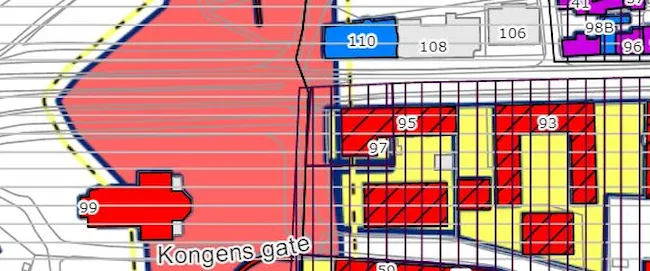 Sjekk reguleringsplan: plankart med bestemmelser for aktuell bygning/område.