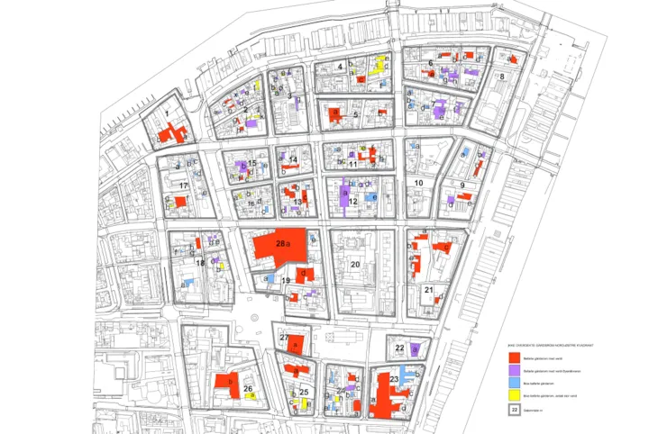 I forbindelse med en kulturhistorisk stedsanalyse for deler av Midtbyen (DIVE) har det blitt gjennomført en kartlegging av bevarte, åpne gårdsrom. Arbeidet er ikke ferdigstilt, men kartet under viser en foreløpig oversikt.