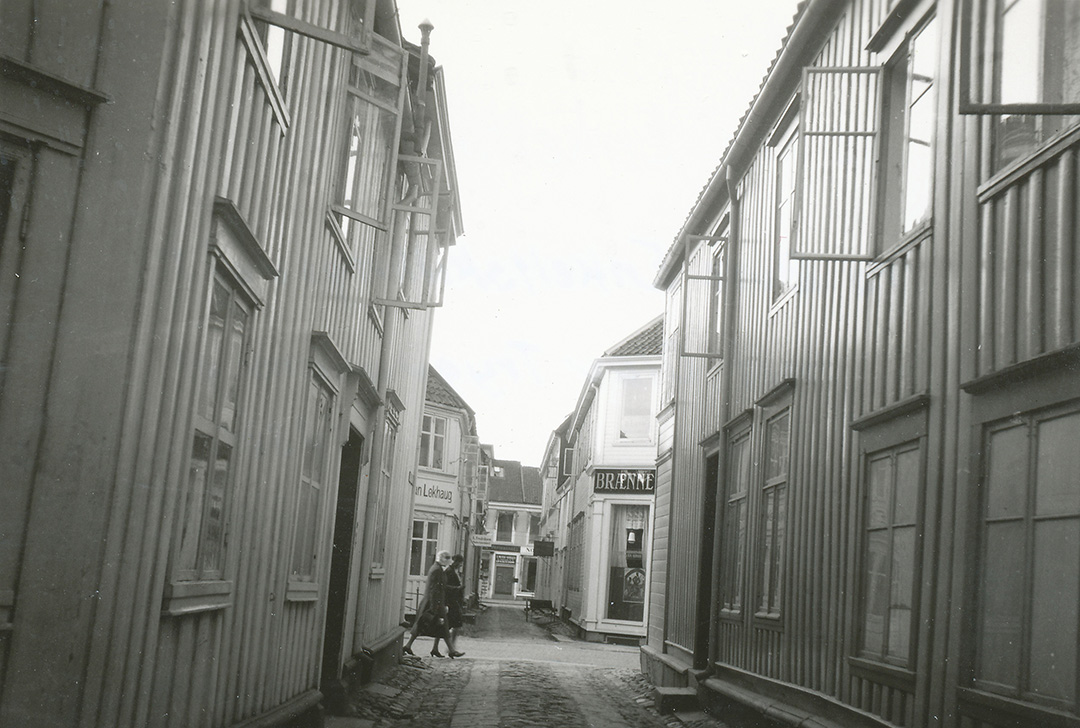I flere av byens tregårder ligger første etasje 10-50 cm over gatenivå. Her er den anbefalte løsningen innvendig rampe.