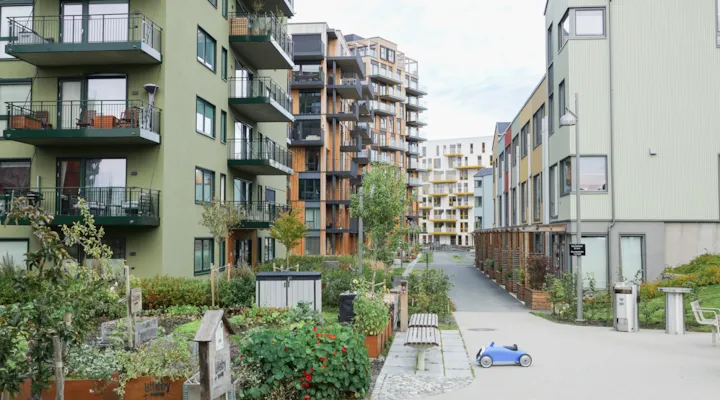 Urbant nabolag med et spekter av ulike møteplasser, både for beboere og besøkende