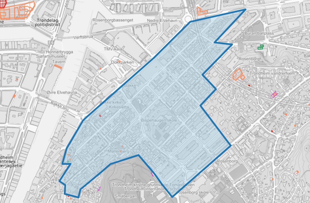Forbudet vil gjelde for området vist i bildet ovenfor.