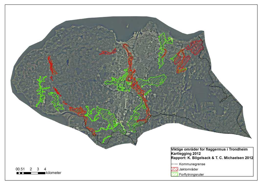 - Kartlegging av flaggermus i Trondheim, 2012 (Bögelsack & Michaelsen)