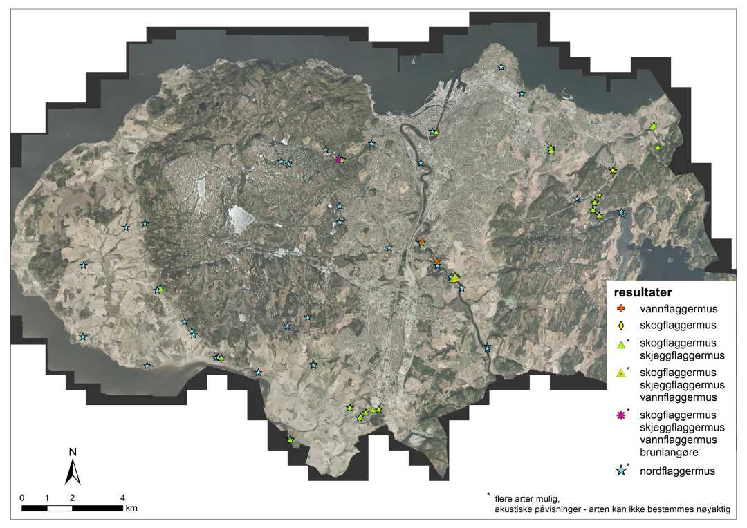 Undersøkelsen og tidligere registreringer viser at seks flaggermusarter med sikkerhet er påvist i Trondheim kommune. Disse er:
